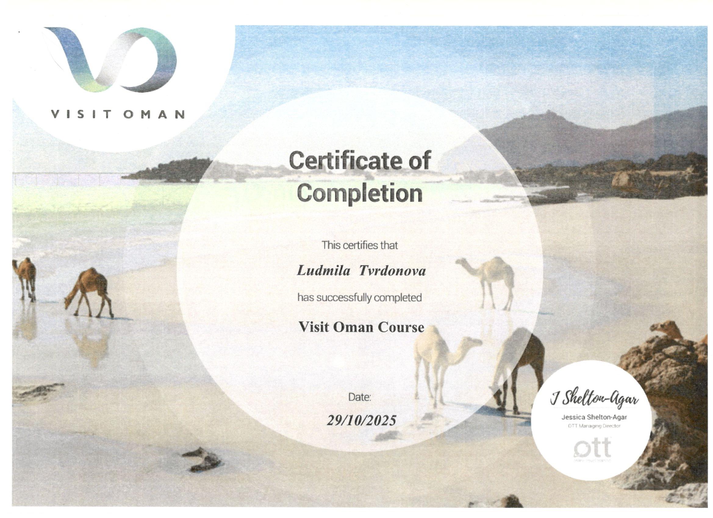 Odlet do Maskatu v 02:30. Přílet do Maskatu v 03:45. Všechny časy jsou místní časy. Transfer do hotelu Ramada Encore 4*. Ubytování, odpočinek, snídaně v hotelu. Program začíná ve 14:00 odpoledne okružní jízdou hlavním městem sultanátu Maskatem. Projdeme se kolem paláce Al Alam, kde sultán přijímá oficiální návštěvy. U paláce jsou dvě portugalské pevnosti z konce 16. století - Al Džalali a Al Mirani a domy nesoucí stopy portugalského vlivu. Ve staré čtvrti Matrah vystoupíme na pevnost, která se vypíná nad zálivem a nabízí výhled na historickou část města a dokonce příjemnou kavárničku. Nakonec povede naše cesta na starý ománský súk Matrah. Procházka po úzkých uličkách naplněných vůní kadidla a santalového dřeva, kolem obchodů plných orientálního zboží. Volný čas pro vlastní zážitky a nákupy. Návrat do hotelu Ramada Encore, večeře a nocleh.