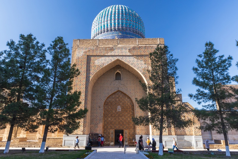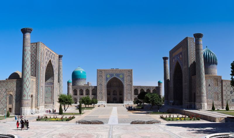 Odjezd vlakem do Samarkandu. Snídaně buď v hotelu nebo formou balíčku na cestu. Cesta vlakem je sama o sobě zážitkem, je komfortní a na vysoké úrovni. Samarkand patří mezi nejstarší města kulturního světa. Co do významu může být srovnáván s Římem, Babylonem nebo Athénami. Po příjezdu do Samarkandu nasedneme do autokaru a přesuneme se do manufaktury, v které se za použití dva tisíce let staré technologie vyrábí papír z kůry morušovníku. Tento papír je velmi odolný, především vůči hmyzu. Výroba zanikla v 18. století, ale byla v Samarkandu obnovena za podpory UNESCO. Dalším významným místem je Ulugbekova observatoř z 15. století. Ulugbek byl vnukem Amira Timura (Tamerlána), byl nejen vládcem rozlehlé říše, ale také astronomem, matematikem a učencem. V 15. století byla postavena také rozlehlá mešita Bibi Chanym, kterou Amir Timur věnoval své milované manželce Saray Mulk Chanum. Nedaleko mešity se nachází velký bazar Siab, kde se prodává vše, na co v Samarkandu pomyslíte. Návštěva jistě stojí za to. Odjezd do hotelu, ubytování a večeře.