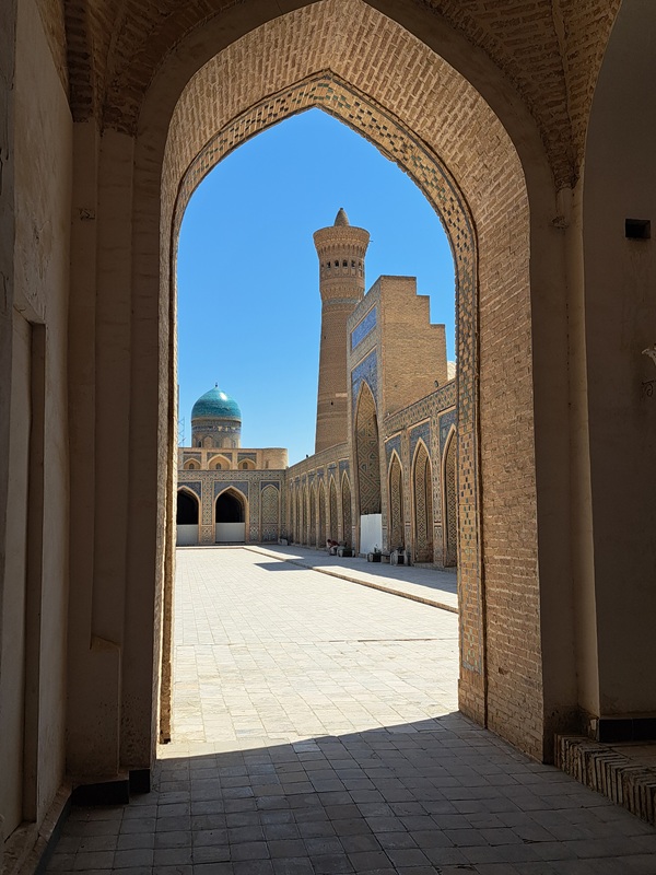 Po snídani pěší prohlídka další části historické Buchary. Minaret Kalyan z 12. století je architektonickým skvostem Buchary. . Se svou výškou 46 metrů je nepřehlédnutelnou dominantou města. Jak minaret, tak přilehlý komplex Poi Kalyan sestávající z mešity a náboženských škol je zapsán na seznamu kulturního dědictví UNESCO. Hojně navštěvovanou památkou je mešita Bolo Hauz s vodní nádrží, podle které dostala své jméno. Je to překrásná stavba z 18. století, která stále plní svoji funkci a slouží obyvatelům Buchary. Bucharská pevnost - Ark (v uzbečtině ark = pevnost) bývala sídlem bucharských emírů a její historie sahá až do prvního tisíciletí před naším letopočtem. Současná podoba je výsledkem přestaveb provedených od 18. do 20. století našeho letopočtu. Návrat do hotelu, večeře a nocleh.