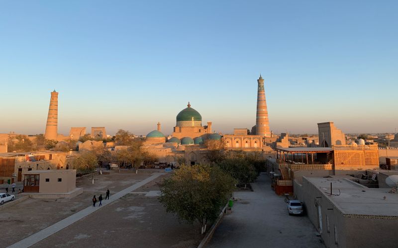 Po snídani v hotelu nás čeká cesta přes poušť Kyzylkum (Červená poušť). Je to rozsáhlá středoasijská poušť mezi řekami Amudarjou a Syrdarjou. Trasu dlouhou 450 km do města Chiva budeme absolvovat v klimatizovaném autobuse. Cestou zastavíme na oběd a později odpoledne na kávu, v místech je možnost využít udržované čisté toalety. Zastávka v písečných dunách, přejezd řeky Amudarja (ve starověku známé jako Oxys). Příjezd do Chivy, ubytování v hotelu, večeře a nocleh. Chiva je tím nejkrásnějším místem, které v Uzbekistánu naleznete. Staré město je malé, obklopené hradbami, plné památek, až oči přecházejí. Chiva je památkovou rezervací bez moderních rušivých zásahů. Večer je možné se vydat na procházku osvětleným vnitřním městem.