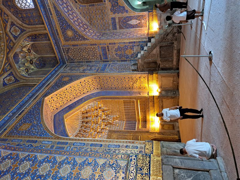 Po snídani v hotelu začne další úžasnými zážitky naplněný den v Samarkandu. Prohlédneme si impozantní mauzoleum Gur Amir , místo konečného odpočinku velkého Amira Timura . Tato nádherná stavba byla vybudována v 15. století a během sovětské éry dokonale obnovena. (Tak jako většina památek v Uzbekistánu.) Neméně velkolepé je náměstí Registan. Zde stojí hned tři monumentální stavby vybudované v rozpětí 15. – 17. století. Jsou to rozlehlé náboženské školy (madrasy) bohatě vyzdobené islámským dekorem, zlatem a mozaikami. Registan je pohádka, která je skutečností. Neméně krásné je pohřebiště vznešených Šáhi Zinda (Živý král), kde stojí nádherná mauzolea vybudovaná od 12. do 20. století. Návrat do hotelu, večeře a nocleh.