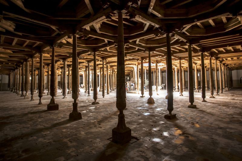 Během prohlídky uvidíme: * madrasu Muhammada Amina – vládce Chivy z 19. století proměněnou v ikonický hotel a * minaret Kalta Minor, který měl být nejvyšším minaretem na světě. Jeho stavba však byla po zavraždění chána Muhammada Amina zastavena. Místo zamýšlených 70 metrů má nedokončený minaret jen 29 metrů. Dalším cílem bude * pevnost Kunya, opevněný palác vybudovaný chánem Arangem v 17. století. Je to město ve městě s vlastními hradbami, mešitami, úřady, stájemi, zbrojnicí a dokonce mincovnou. * Chán Muhammad Rachim byl koncem 19. století vládcem Chivy, ale byl též básníkem známým pod jménem Feruz Šáh. Madrasa (náboženská škola), kterou nechal v r. 1871 vystavět, byla proměněna v zajímavé muzeum. Cenné exponáty a dobové fotografie vypovídají mnohé o životě v Chivském chanátu. * Mauzoleum Pahlavana Mahmuda je nejsvatějším místem v Chivě. Básník, zápasník, léčitel, prostý řemeslník a milovaný svatý ochránce Chivy zde zemřel v roce 1325. Dle posledního přání byl pohřben ve své dílně. V 17. století bylo nad jeho hrobem vybudováno impozantní mauzoleum. * Madrasa Islam Hodža z r. 1908 je pojmenována po osvíceném velkovezírovi Chivského chanátu, který začátkem 20. století vybudoval první veřejnou školu a moderní nemocnici. * Minaret Islam Hodža je nejvyšším minaretem ve městě. * Páteční mešita z r. 1788 s dvěstětřinácti bohatě zdobenými sloupy z jilmového dřeva je dalším místem naší prohlídky. * Zlatým bodem je pak Kamenný palác (Taš Hauli), sídlo chána Allaha Kuli, který vládl Chivskému chanátu v letech 1832 – 1838. Tajná chodba vede k palácovému harému, v komplexu jsou komnaty vládce, soudní síně a přijímací hala. Vše zdobeno obzvláště krásnými obklady z majoliky. Návrat do hotelu, odpočinek, večeře. Po večeři možnost nákupů tradičního zboží v četných obchodech a stáncích otevřených až do pozdních hodin.