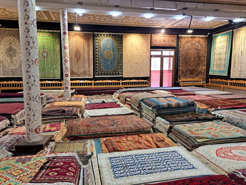 Odjezd vlakem do Samarkandu. Snídaně buď v hotelu nebo formou balíčku na cestu. Cesta vlakem je sama o sobě zážitkem, je komfortní a na vysoké úrovni. Samarkand patří mezi nejstarší města kulturního světa. Co do významu může být srovnáván s Římem, Babylonem nebo Athénami. Po příjezdu do Samarkandu nasedneme do autokaru a přesuneme se do manufaktury, v které se za použití dva tisíce let staré technologie vyrábí papír z kůry morušovníku. Tento papír je velmi odolný, především vůči hmyzu. Výroba zanikla v 18. století, ale byla v Samarkandu obnovena za podpory UNESCO. Dalším významným místem je Ulugbekova observatoř z 15. století. Ulugbek byl vnukem Amira Timura (Tamerlána), byl nejen vládcem rozlehlé říše, ale také astronomem, matematikem a učencem. V 15. století byla postavena také rozlehlá mešita Bibi Chanym, kterou Amir Timur věnoval své milované manželce Saray Mulk Chanum. Nedaleko mešity se nachází velký bazar Siab, kde se prodává vše, na co v Samarkandu pomyslíte. Návštěva jistě stojí za to. Odjezd do hotelu, ubytování a večeře.