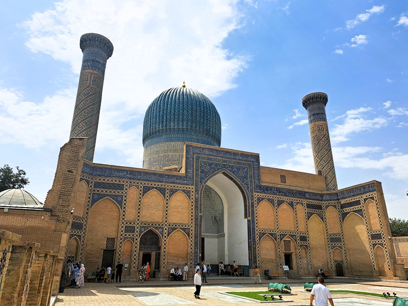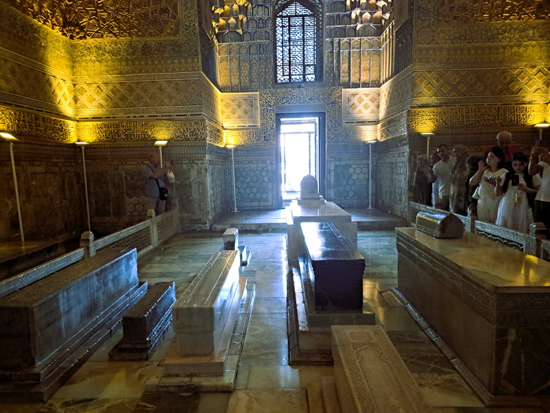 Po snídani v hotelu začne další úžasnými zážitky naplněný den v Samarkandu. Prohlédneme si impozantní mauzoleum Gur Amir , místo konečného odpočinku velkého Amira Timura . Tato nádherná stavba byla vybudována v 15. století a během sovětské éry dokonale obnovena. (Tak jako většina památek v Uzbekistánu.) Neméně velkolepé je náměstí Registan. Zde stojí hned tři monumentální stavby vybudované v rozpětí 15. – 17. století. Jsou to rozlehlé náboženské školy (madrasy) bohatě vyzdobené islámským dekorem, zlatem a mozaikami. Registan je pohádka, která je skutečností. Neméně krásné je pohřebiště vznešených Šáhi Zinda (Živý král), kde stojí nádherná mauzolea vybudovaná od 12. do 20. století. Návrat do hotelu, večeře a nocleh.