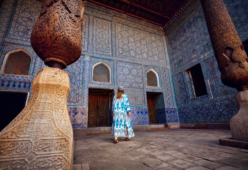 Během prohlídky uvidíme: * madrasu Muhammada Amina – vládce Chivy z 19. století proměněnou v ikonický hotel a * minaret Kalta Minor, který měl být nejvyšším minaretem na světě. Jeho stavba však byla po zavraždění chána Muhammada Amina zastavena. Místo zamýšlených 70 metrů má nedokončený minaret jen 29 metrů. Dalším cílem bude * pevnost Kunya, opevněný palác vybudovaný chánem Arangem v 17. století. Je to město ve městě s vlastními hradbami, mešitami, úřady, stájemi, zbrojnicí a dokonce mincovnou. * Chán Muhammad Rachim byl koncem 19. století vládcem Chivy, ale byl též básníkem známým pod jménem Feruz Šáh. Madrasa (náboženská škola), kterou nechal v r. 1871 vystavět, byla proměněna v zajímavé muzeum. Cenné exponáty a dobové fotografie vypovídají mnohé o životě v Chivském chanátu. * Mauzoleum Pahlavana Mahmuda je nejsvatějším místem v Chivě. Básník, zápasník, léčitel, prostý řemeslník a milovaný svatý ochránce Chivy zde zemřel v roce 1325. Dle posledního přání byl pohřben ve své dílně. V 17. století bylo nad jeho hrobem vybudováno impozantní mauzoleum. * Madrasa Islam Hodža z r. 1908 je pojmenována po osvíceném velkovezírovi Chivského chanátu, který začátkem 20. století vybudoval první veřejnou školu a moderní nemocnici. * Minaret Islam Hodža je nejvyšším minaretem ve městě. * Páteční mešita z r. 1788 s dvěstětřinácti bohatě zdobenými sloupy z jilmového dřeva je dalším místem naší prohlídky. * Zlatým bodem je pak Kamenný palác (Taš Hauli), sídlo chána Allaha Kuli, který vládl Chivskému chanátu v letech 1832 – 1838. Tajná chodba vede k palácovému harému, v komplexu jsou komnaty vládce, soudní síně a přijímací hala. Vše zdobeno obzvláště krásnými obklady z majoliky. Návrat do hotelu, odpočinek, večeře. Po večeři možnost nákupů tradičního zboží v četných obchodech a stáncích otevřených až do pozdních hodin.