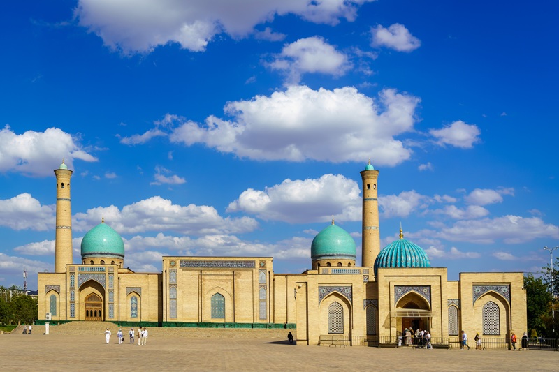 Přílet do Taškentu v 04:45. Setkání s místním průvodcem, ubytování v hotelu, snídaně a odpočinek po náročné cestě. Program v Taškentu začne až odpoledne. Taškent je hlavním městem Uzbekistánu, moderní metropolí s pohnutou historií. V roce 1966 byla část města zničena silným zemětřesením. Navštívíme památník obětí v samém epicentru, pak se přesuneme do historického duchovního centra města, komplexu Chazrati Imam (Velký Imám), který zahrnuje mešity, školy koránu, knihovnu, islámské budovy a instituce. Centrem komplexu se stalo mauzoleum učence, básníka a jednoho z prvních učitelů islámu – imáma Abu Bakr al-Šošiji, narozeného r. 903 v Taškentu. V Chazrati Imam je uložen cenný rukopis koránu ze 7. století. Další místem, které poznáme, je náměstí Amira Timura (známého jako Tamerlán) v centru moderního Taškentu. Náměstí vévodí jezdecká socha Amira Timura, nachází se zde právnická fakulta univerzity, hotel Uzbekistán a známé hodinové věže. Večeře v hotelu, nocleh.